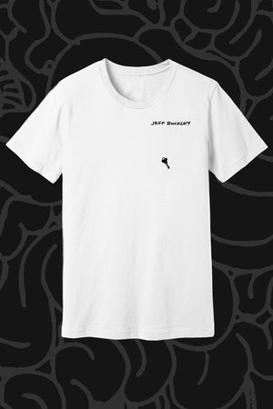 He designed only one piece of merch his life: the Peyote Radio Theater white v-neck tee. We’ve honored his design as the core of this collection of Official Jeff Buckley merchandise.